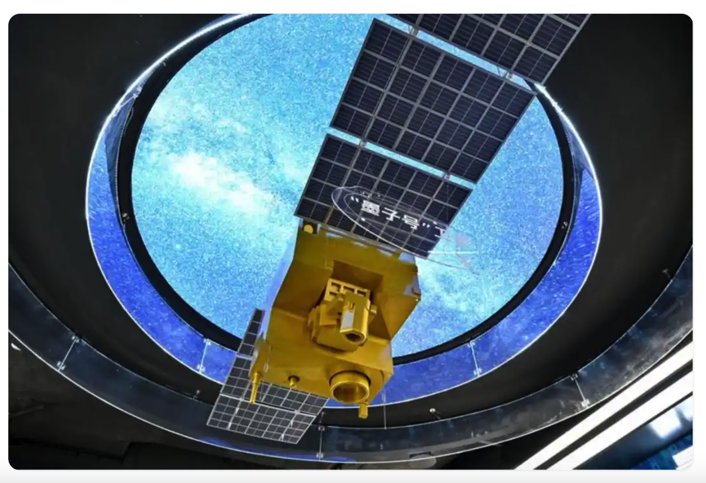 這是在中電信量子信息科技集團有限公司的科技體驗館內拍攝的“墨子號”量子衛星模型(7月1日攝)。新華社記者 張鋮 攝